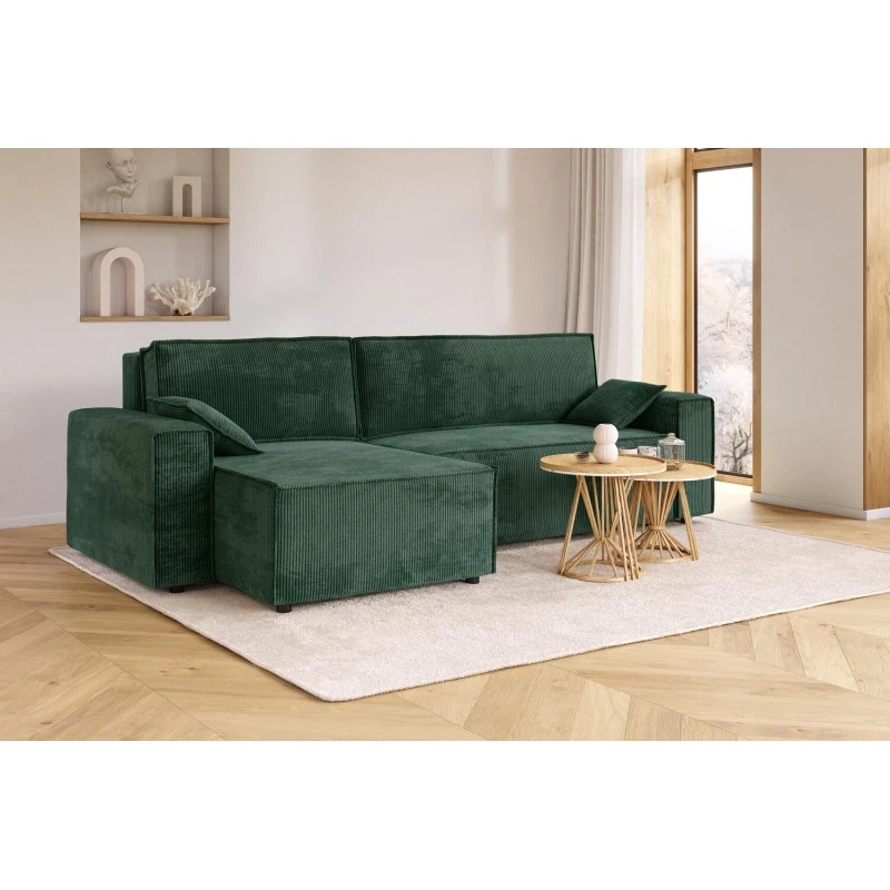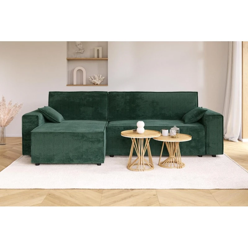 Découvrez le canapé d’angle MARIUS 4 places et craquez pour son style cocooning et tendance ! Ses larges accoudoirs et sa forme cubique inviteront à la détente. Son revêtement en velours côtelé apportera du charme à votre intérieur. Grâce à son angle réversible vous pourrez optimiser l’espace de votre intérieur.