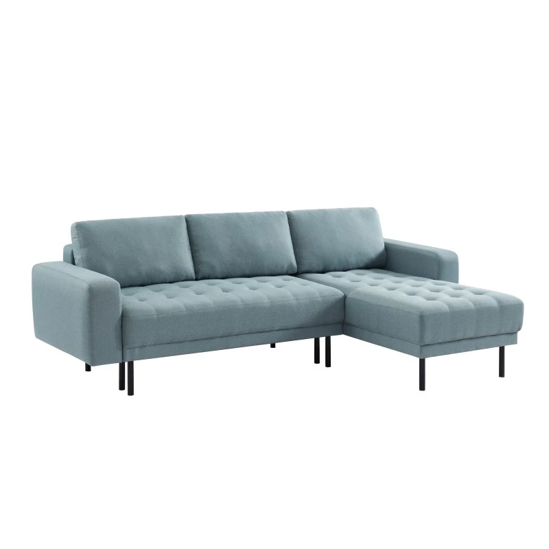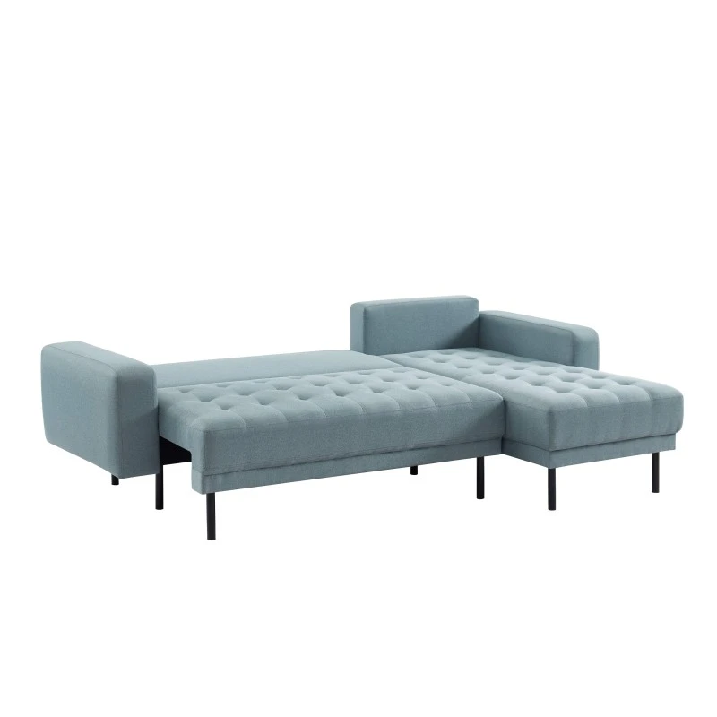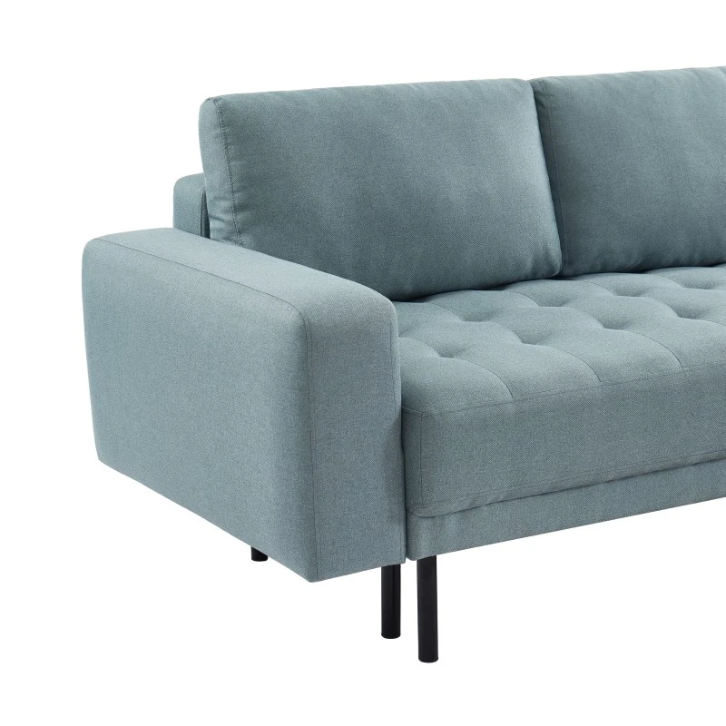 Le canapé MEGEVE en tissu vert d’eau trouvera facilement sa place dans votre intérieur. Avec son assise capitonnée et ses pieds en métal, il impose son style ! Profitez en un clin d’œil d’un couchage 110 x 200 cm.