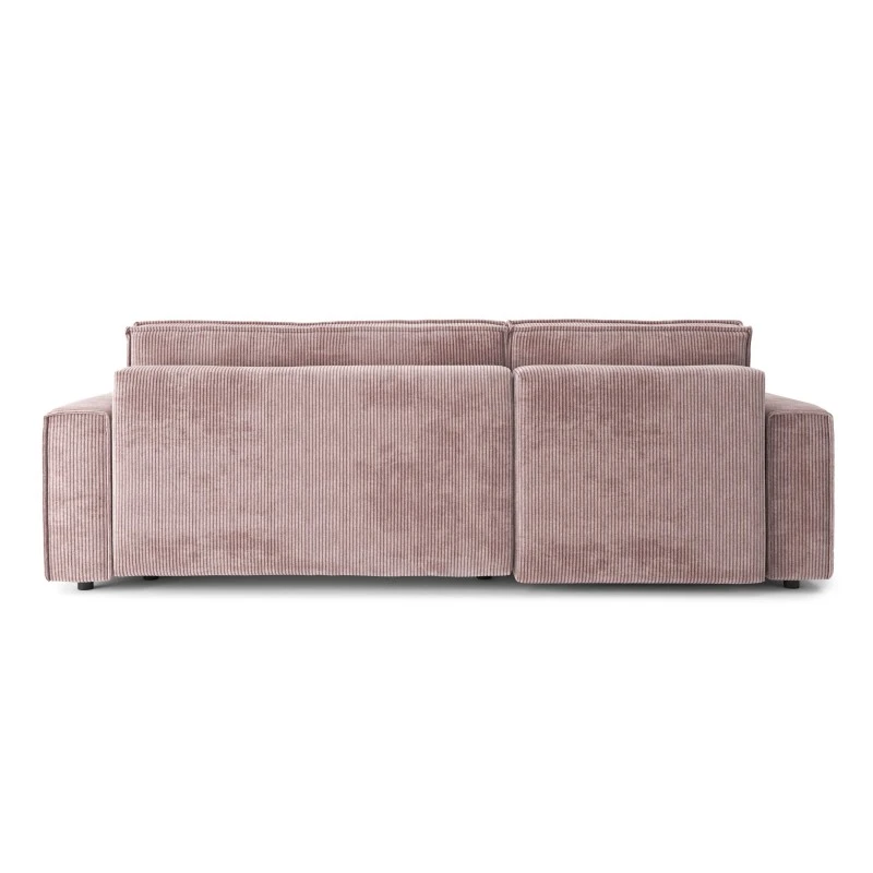 Son revêtement en velours côtelé, ses accoudoirs carrés et son format généreux sont ses vrais atouts tendance.