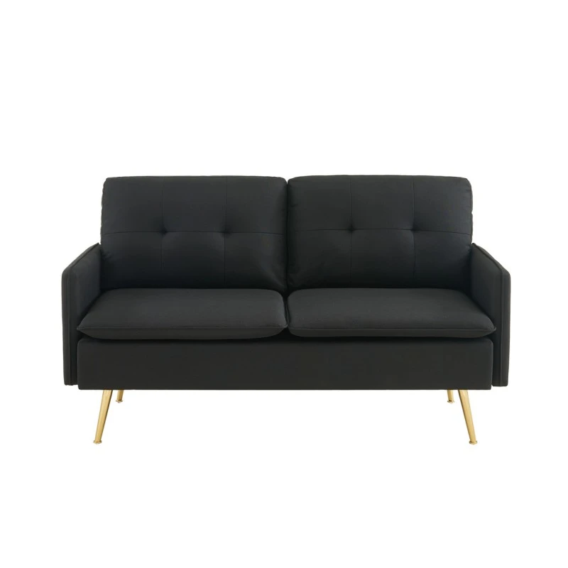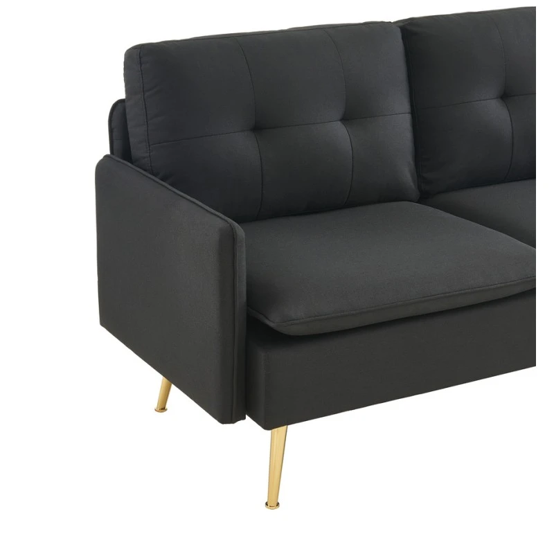 Avec son revêtement en tissu noir le canapé 2 places ADAM a tout pour plaire ! Son piètement très en vogue en métal doré apportera une touche d’élégance à votre intérieur. N’hésitez plus et laissez-vous séduire par l’association du tissu et du métal qui créeront une ambiance vintage.