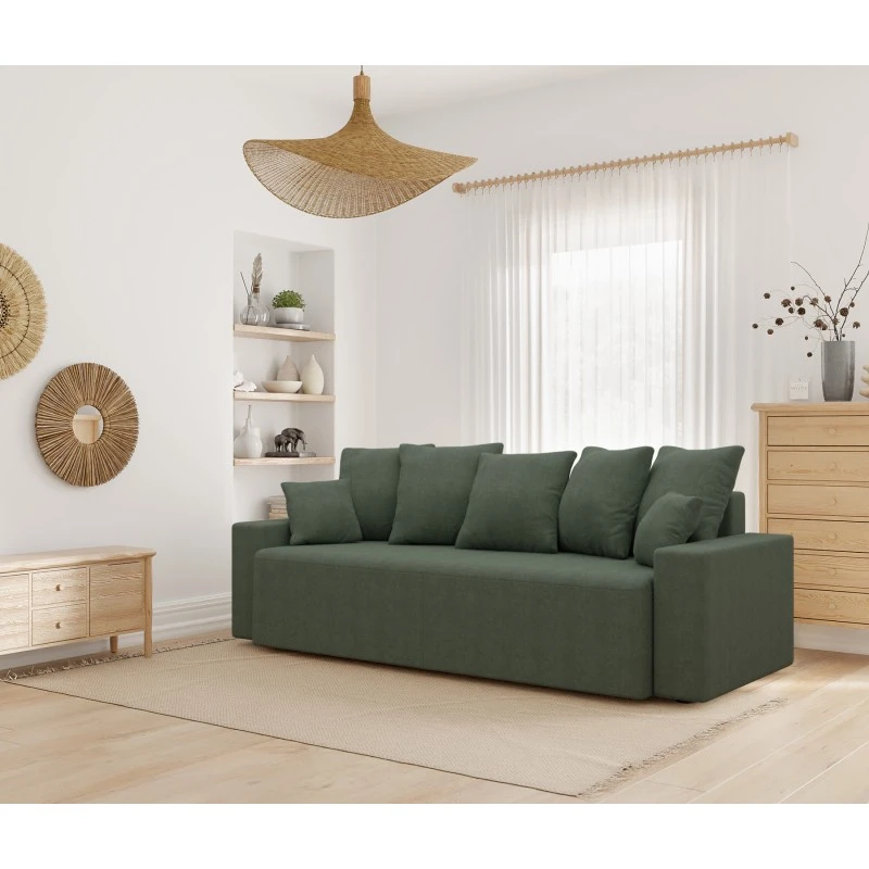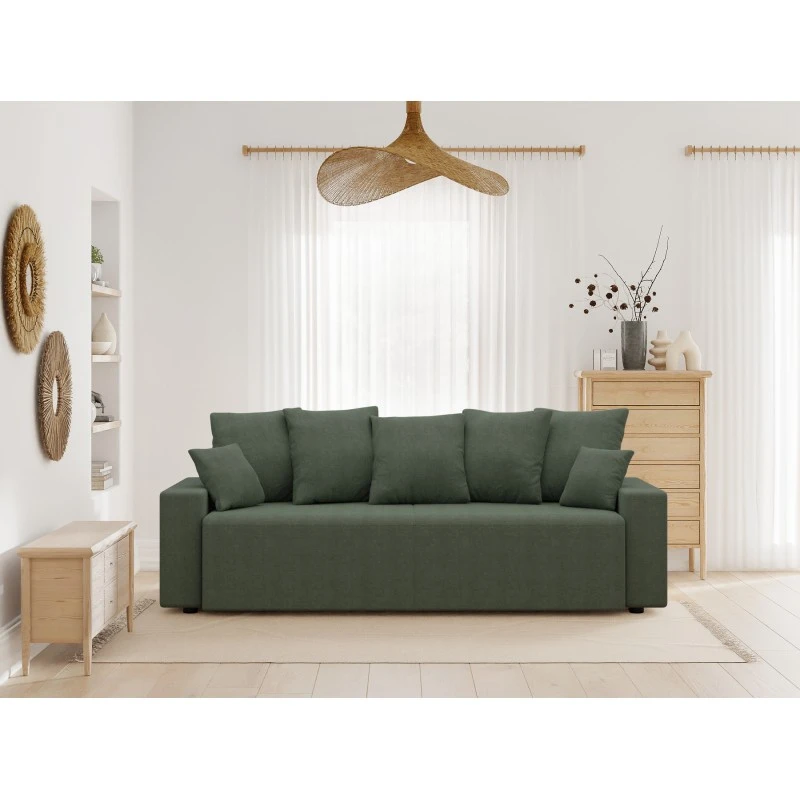 Avec ses lignes droites et épurées et ses larges accoudoirs, ce canapé tendance s’inscrira à merveille dans votre séjour. Son jeté de coussins invite à la détente et offre un confort de grande qualité.