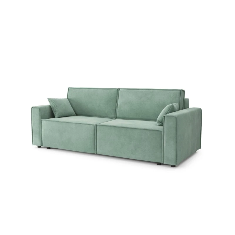 Son revêtement en tissu, ses accoudoirs carrés et son format généreux sont ses vrais atouts tendance.