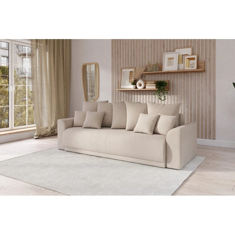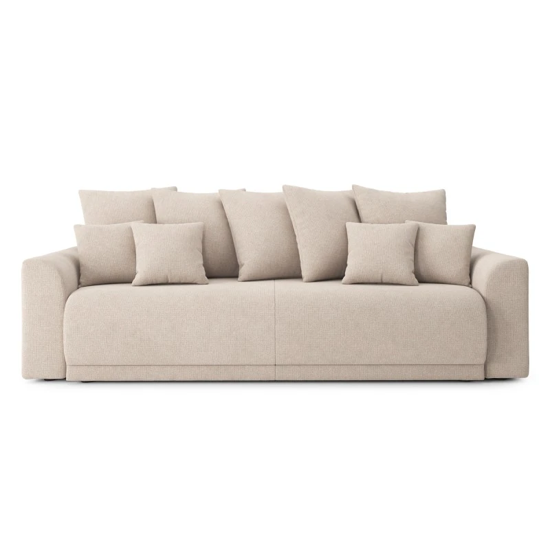 Avec ses formes arrondies, ses lignes épurées et ses accoudoirs en demi-lune,ce canapé deviendra la pièce maîtresse de votre salon. Son jeté de coussins invite à la détente et offre un confort de grande qualité.