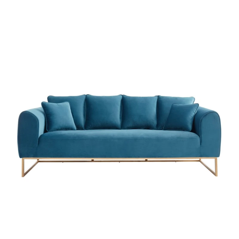 Pour un intérieur chic et élégant craquez pour le canapé VICTORIA 3 places ! Laissez vous séduire par l’association du revêtement en velours et de ses pieds en métal dorés pour un look romantique assuré.