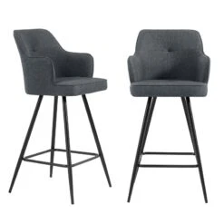 Lot De 2 Tabourets EUGENE En Velours Gris Foncé Avec Pieds Dorés