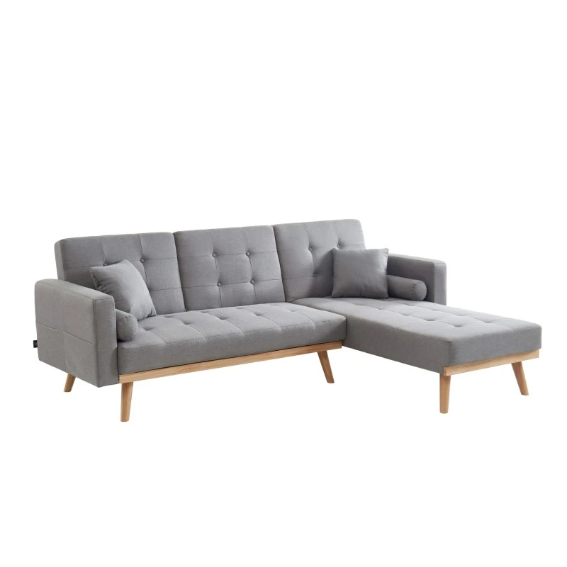 Craquez pour le canapé d’angle KELLY ! Son style scandinave perdure dans le temps et ne vous décevra jamais. Ses pieds en bois naturel apporteront une touche naturelle à votre décoration, et sa teinte claire apportera de la lumière chez vous.
