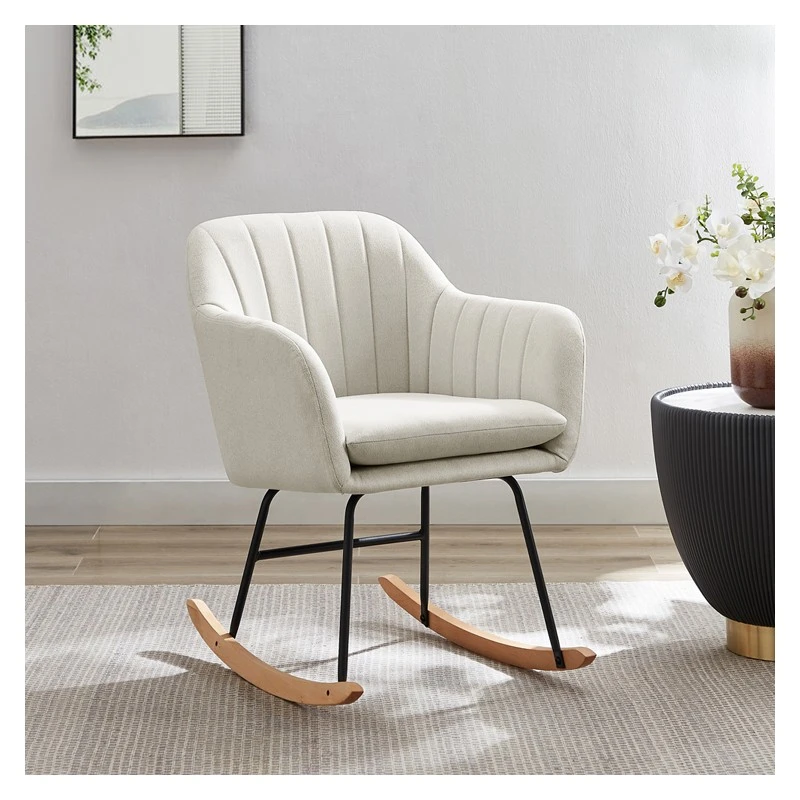 Découvrez le fauteuil rocking chair ELSA au style scandinave. Ses pieds à bascule vous offriront un instant de détente. Ce fauteuil sera parfait pour prendre votre café, travailler face à votre bureau ou bercer un bébé.