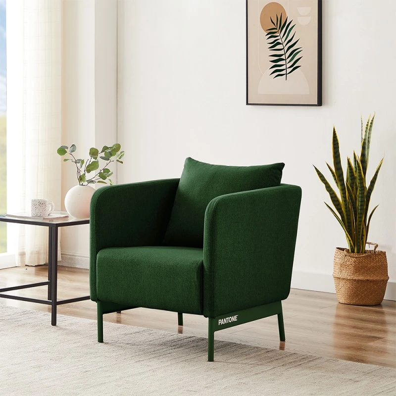 On craque pour la forme enveloppante du fauteuil PANTONE. Appréciez le maintien assuré par le dossier et les accoudoirs.