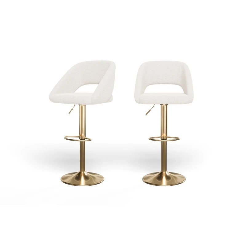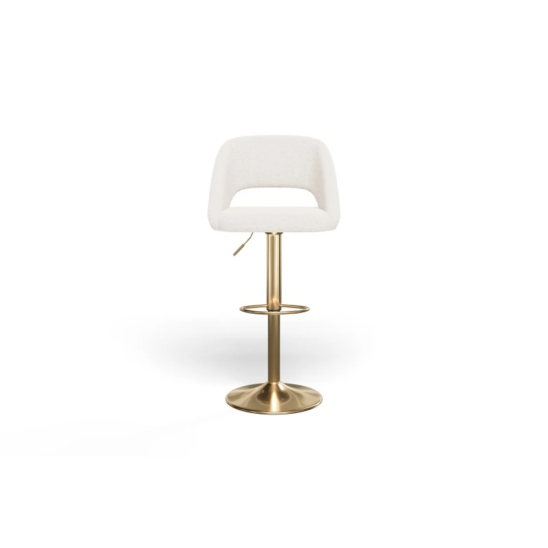L’association du revêtement en tissu bouclette et du pied en métal doré (ajustable pour une hauteur d’assise de 60 – 80,5 cm), lui confère un aspect moderne. Ce tabouret s’adaptera parfaitement à votre intérieur.
